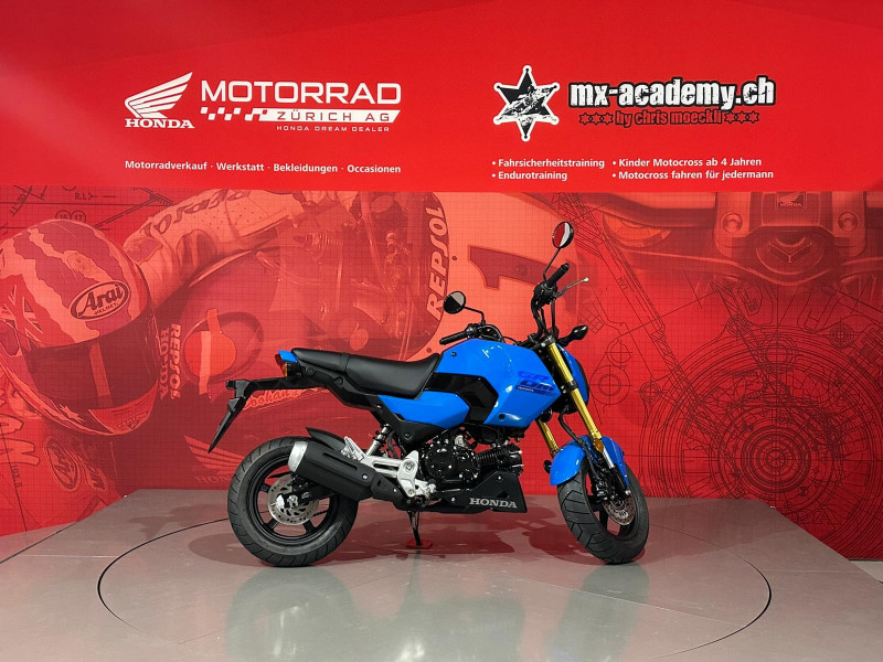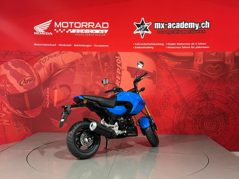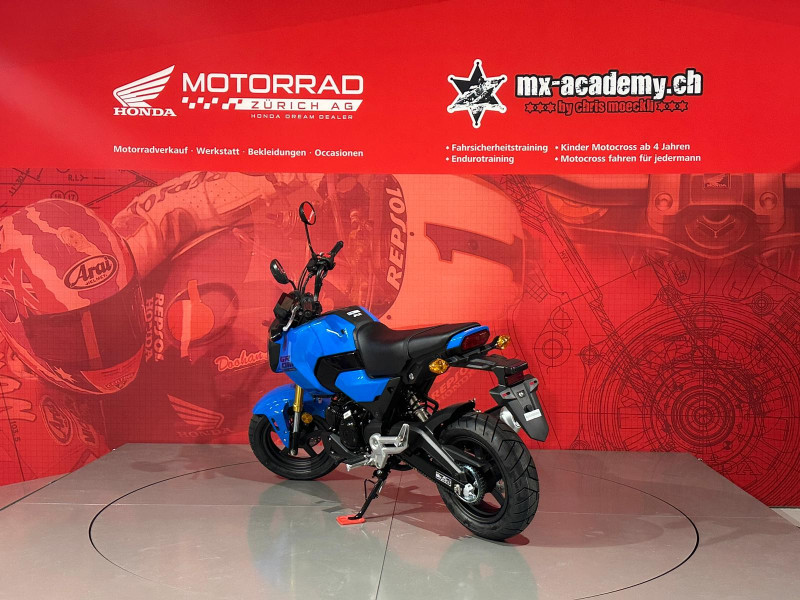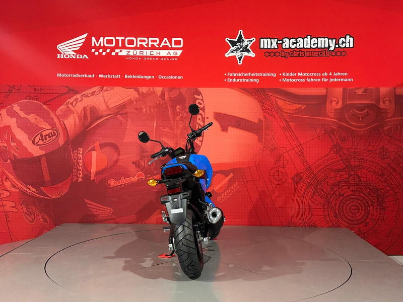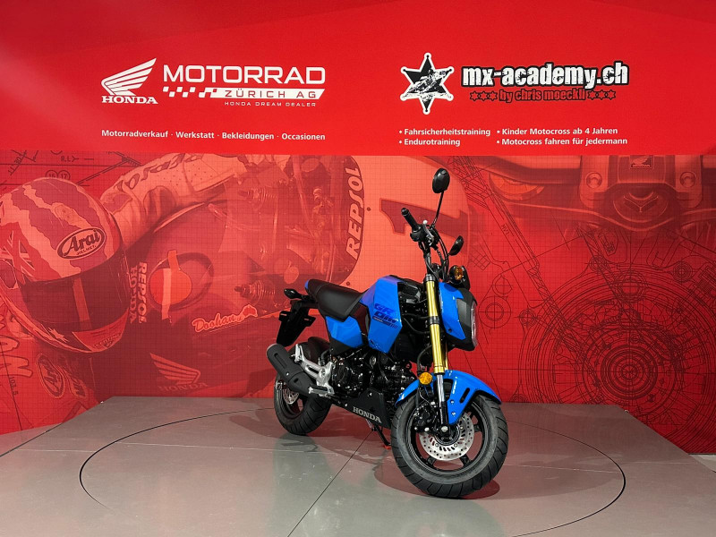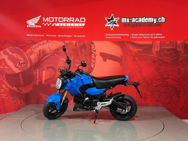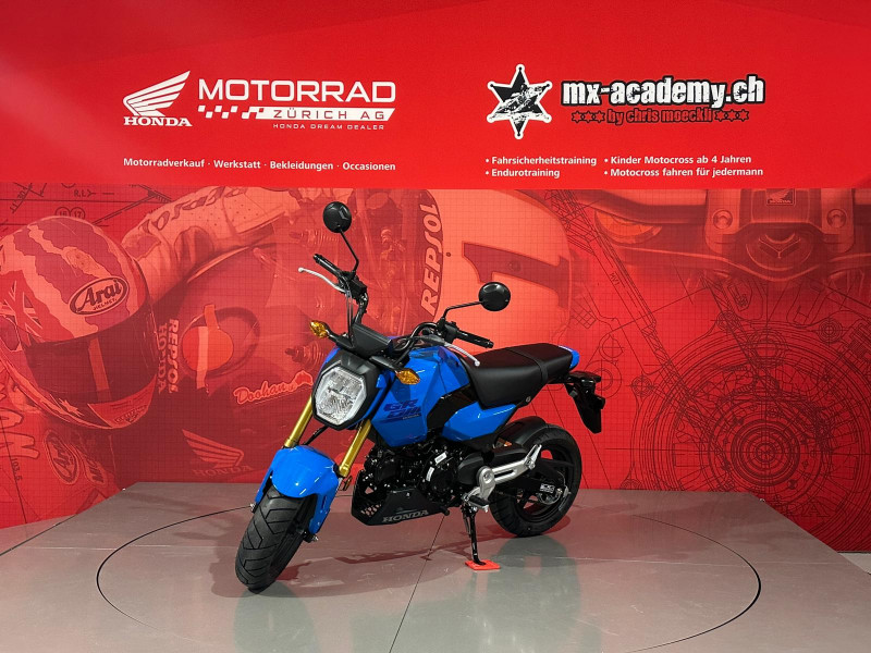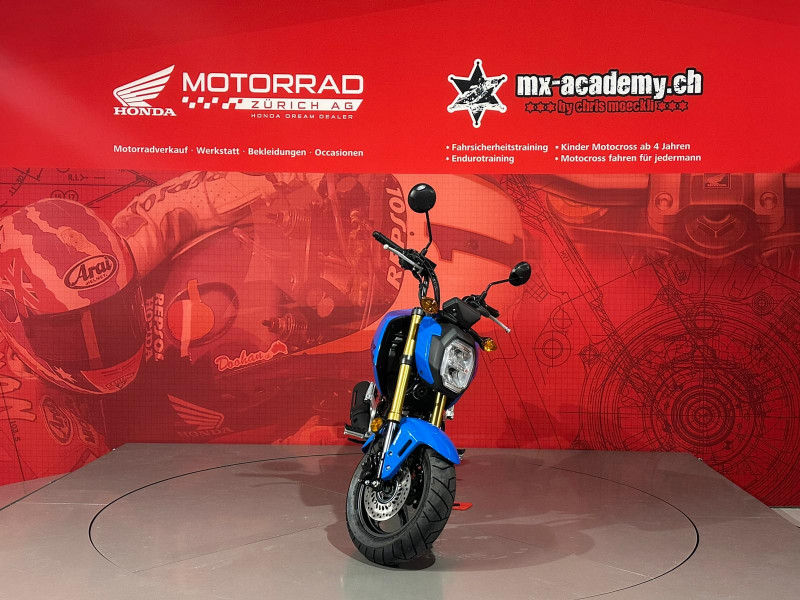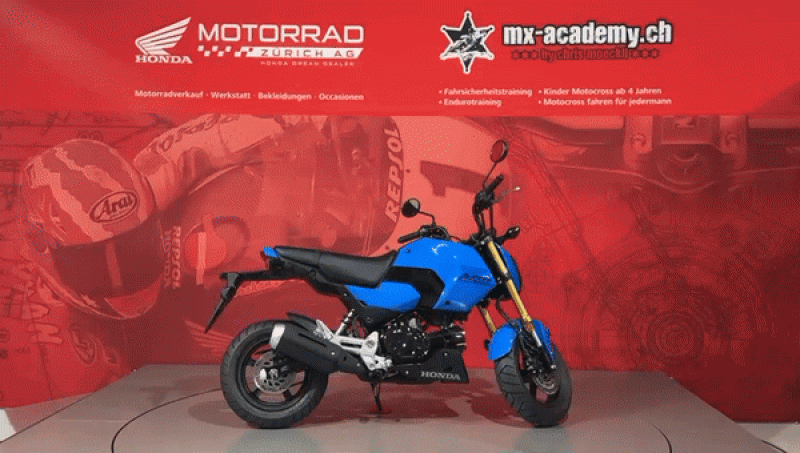 Um Ihnen eine professionelle Verkaufsberatung oder Verkauf zu garantieren inklusive der dazu benötigten Zeit, bitten wir Sie um eine um eine Terminvereinbarung mit Angaben des betroffenen Modells, sowie weiterer Wünsche und Möglichkeiten (wie Leasing & Zubehör). Wir möchten Sie daher bitten, uns dafür einen Wunschtermin und Zeit vorzugsweise per E-Mail oder allenfalls per Telefonanruf mitzuteilen. Diese Honda MSX125 Grom ist ab Lager "Honda Motorrad Zürich" kurzfristig verfügbar. Neupreis Fr. 4489.- plus Fr. 200.- Ablieferpauschale (voller Tank, Formalitäten) - 72 Mt. Honda Swiss Garantie. *** Honda Motorrad Zürich – Willkommen beim grössten Honda Motorrad- und Roller Stützpunkt der Schweiz. - Über 120 Honda Motorräder und Roller sind bei uns auf Lager, ergänzt durch eine grosse Flotte an Vorführmotorrädern und -rollern. Unsere MX-Academy, die grösste Motocross- und Enduroschule Europas, bietet Fahrkurse für alle: Motocross für Kinder ab 4 Jahren, Motorrad-Fahrsicherheitstrainings, sowie Motocross- und Enduro-Kurse für Anfänger und Fortgeschrittene. Schnupperkurse sind ebenfalls verfügbar. www.mx-academy.ch *** Beim Kauf von diesem Motorrad gibt es ein hochwertiges Polo Shirt und einen Pullover geschenkt dazu. Zusätzlich gibt es 20% Rabatt auf das gesamte Bekleidungssortiment im Shop – perfekt ausgestattet durchstarten! HONDA DREAM DEALER ZÜRICH