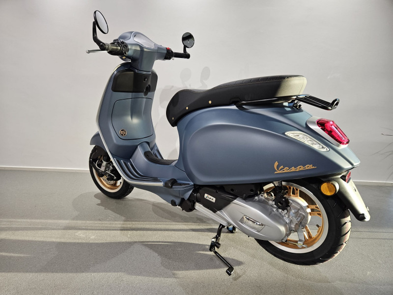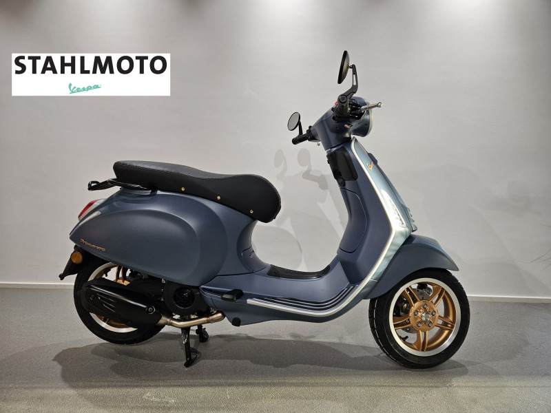 Diese wunderschöne Vespa Primavera 125 Officina 8 E5+ in "Blu Officina" ist NEU und kurzfristig ab Lager Stahlmoto verfügbar. Neupreis Fr. 5295.- plus Fr. 200.- Bereitstellungs-Pauschale (voller Tank, Vignette, Formalitäten) 48 Mt. Vespa Werksgarantie.