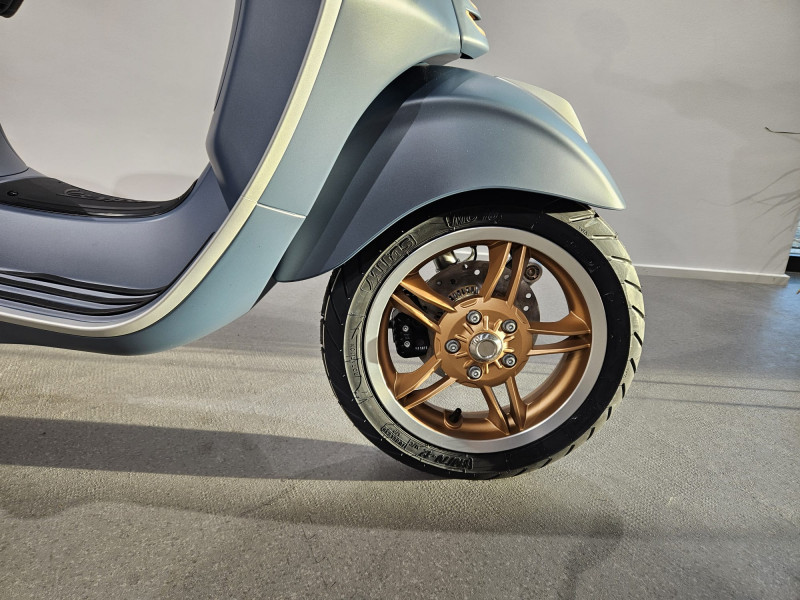 Die Vespa Primavera Officina 8 bringt das Erbe von Vespa mit Eleganz und einem modernen Touch neu auf die Straße. Die intensive blaue Lackierung ist von den Industriemaschinen in der historischen Werkstatt 'Officina 8' des Piaggio Werks inspiriert. Eine Hommage an die Tradition, die zu einem unverwechselbaren Symbol für Stärke und Identität geworden ist. Die metallene Details, die polierten Messingnieten und die Kontrastnähte auf dem Sattel zeugen von der Genialität, Sorgfalt und Leidenschaft, die Vespa seit jeher auszeichnet.