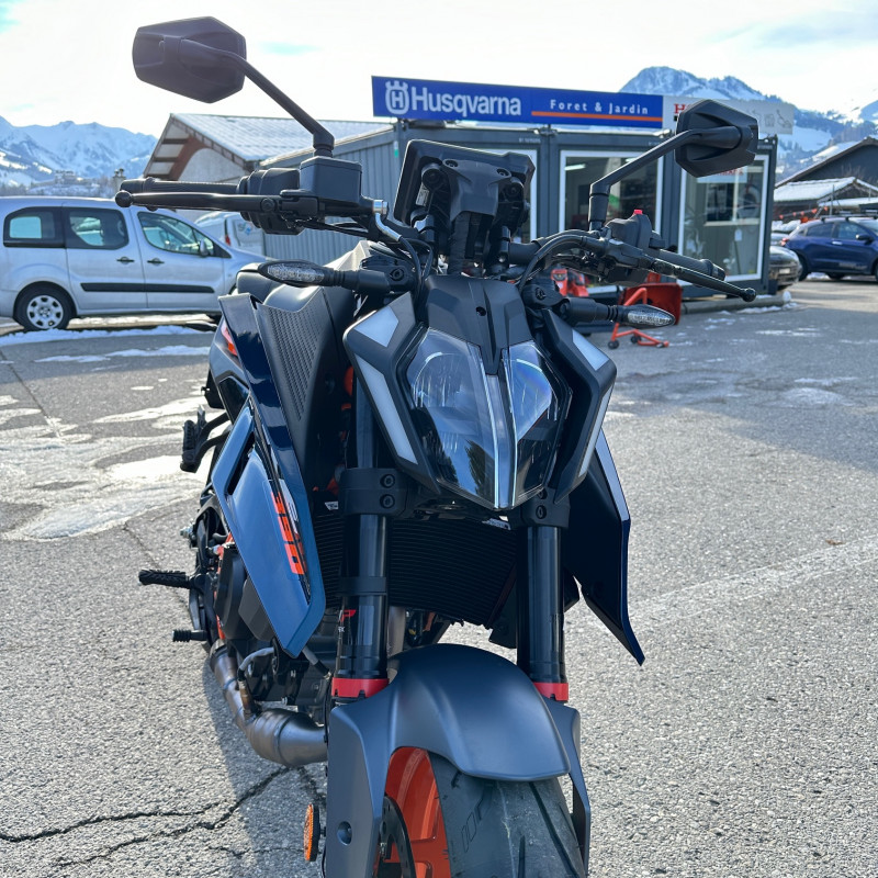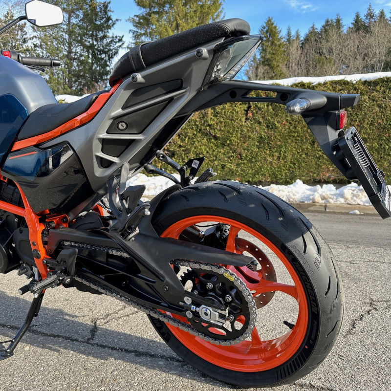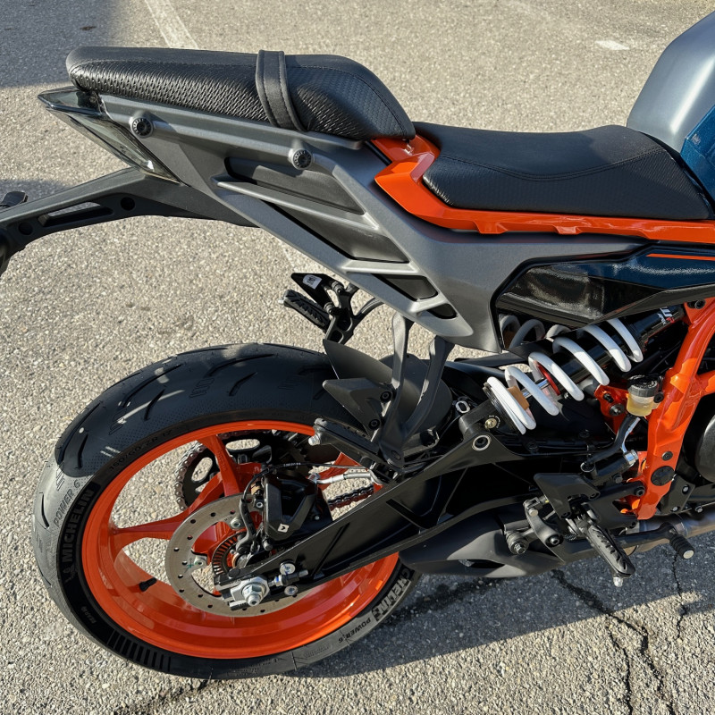 KTM 390 Duke 2024, roadster moderne et léger, parfaitement adapté aux jeunes conducteurs en permis 35 kW. Moto vive, maniable et facile à prendre en main, idéale pour un usage quotidien comme pour le plaisir.