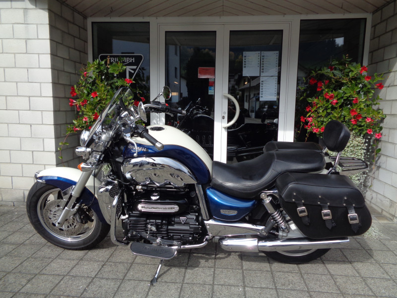 Die Rocket III befindet sich in Topzustand und ist mit Seitentaschen, Windschild, Syssibar und vielen anderen Zubehörteilen ausgestattet. Vor dem Verkauf wird ein Service ausgeführt und die MFK wird gemacht. Vor 1'000 Km wurde eine komplette Motor- und Getrieberevision im Wert von über Fr. 6'500.- ausgeführt.