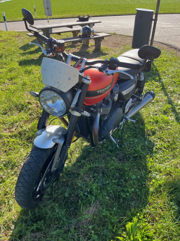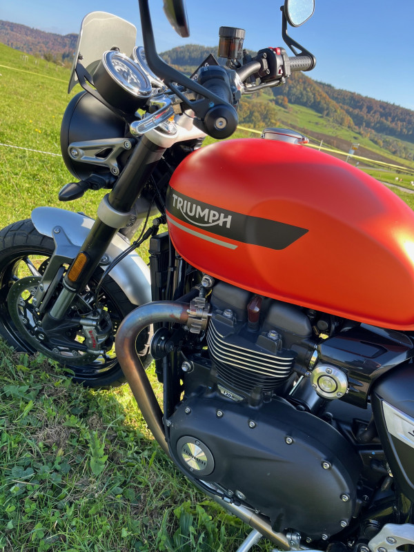 Diese wunderschöne Triumph Speed Twin 1200 in einem knalligen Orange steht bei uns zur Verfügung!