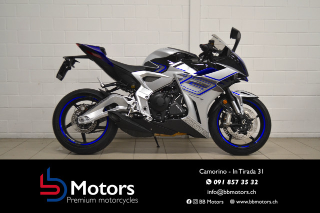 Il veicolo è nuovo con 3 anni di garanzia inclusi ! Pagabile anche in comode rate a partire da 180 franchi al mese. Vieni in showroom per una consulenza ! Possibile modifica a 35kW o 70kW Colorazioni disponibili : Grigio-Azzurro / Bianco-Rosso Dotazione/Accessori inclusi: Accensione senza chiave Connessione Bluetooth + Presa USB Luci a LED! Altezza Sella 795mm Schermo LCD a colori Funzione di navigazione Quick-Shifter UP/Down Traction control Sensore di pressione delle gomme Manopole riscaldate Amortizzatori Marzocchi Impianto frenante Brembo ---------------------------------------------------------------------------- The vehicle is new; 3 Years of warranty are included. Monthly payment can be accorded. Come to visit us for more information ! Possible modification to 35kW or 70kW Available in these colors: Gray-Blue / White-red Included Optionals/Accessories: Keyless Bluetooth connection + USB charger Led headlights Quickshifter Seat height 795mm Navigation function LCD Color Display with Bluetooth connection Navigation function Marzocchi suspensions Brembo braking system Heated Handgrips Traction control Tire Pressure Management System